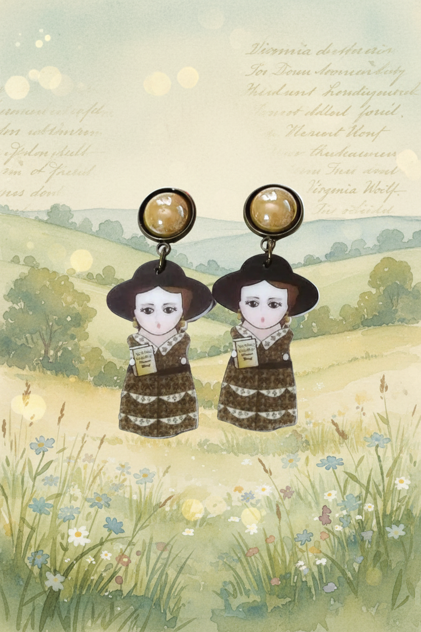 Luce original con estos pendientes con ilustración Pendientera de la escritora Virginia Woolf.