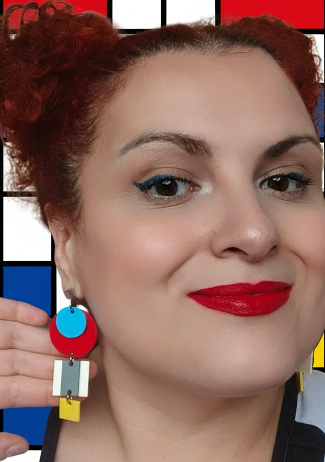 Luce fantástica con este complemento, unos originales pendientes elaborados artesanalmente en acetato de celulosa cortado con láser y que ofrecerán un look moderno y artístico a tu outfit diario o de fiesta. Están inspirados en la obra artística de Mondrian.