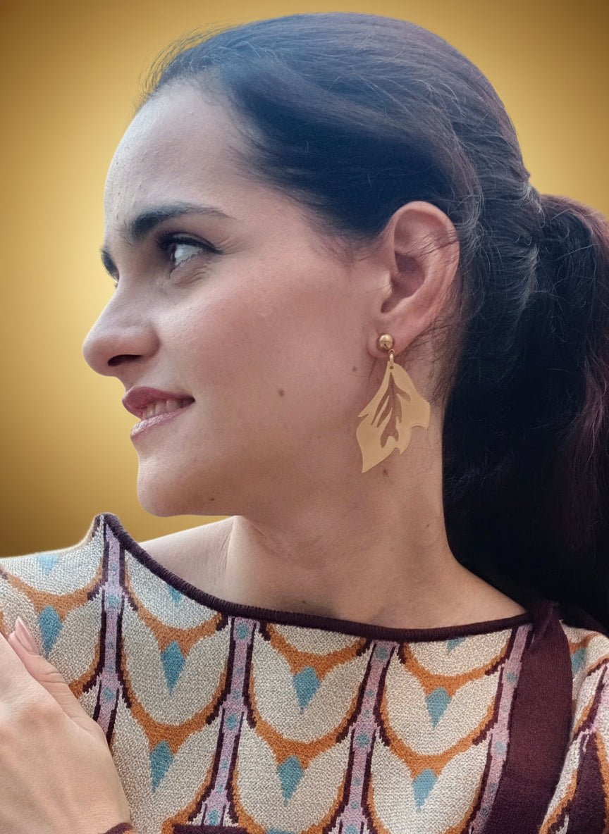 Luce original con estos pendientes en forma de hojas abstractas acrílicas cortadas con láser.