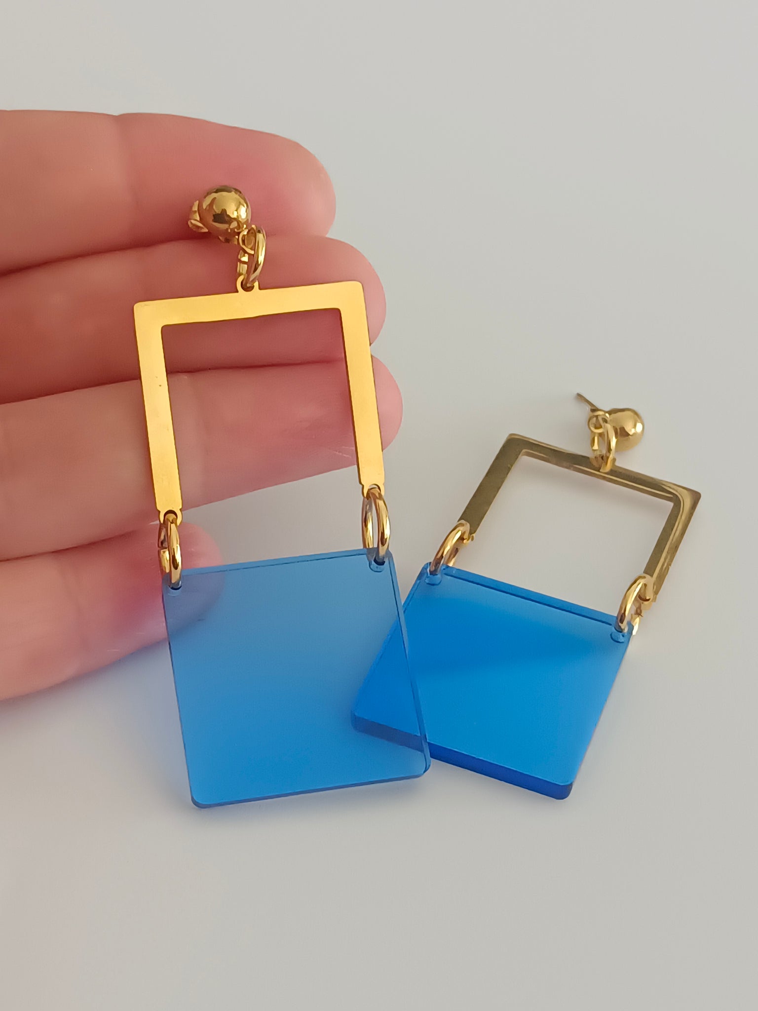Luce fantástica con este complemento, unos originales pendientes elaborados artesanalmente en metacrilato acrílico cortado con láser y que ofrecerán un look moderno y artístico a tu outfit diario o de fiesta.