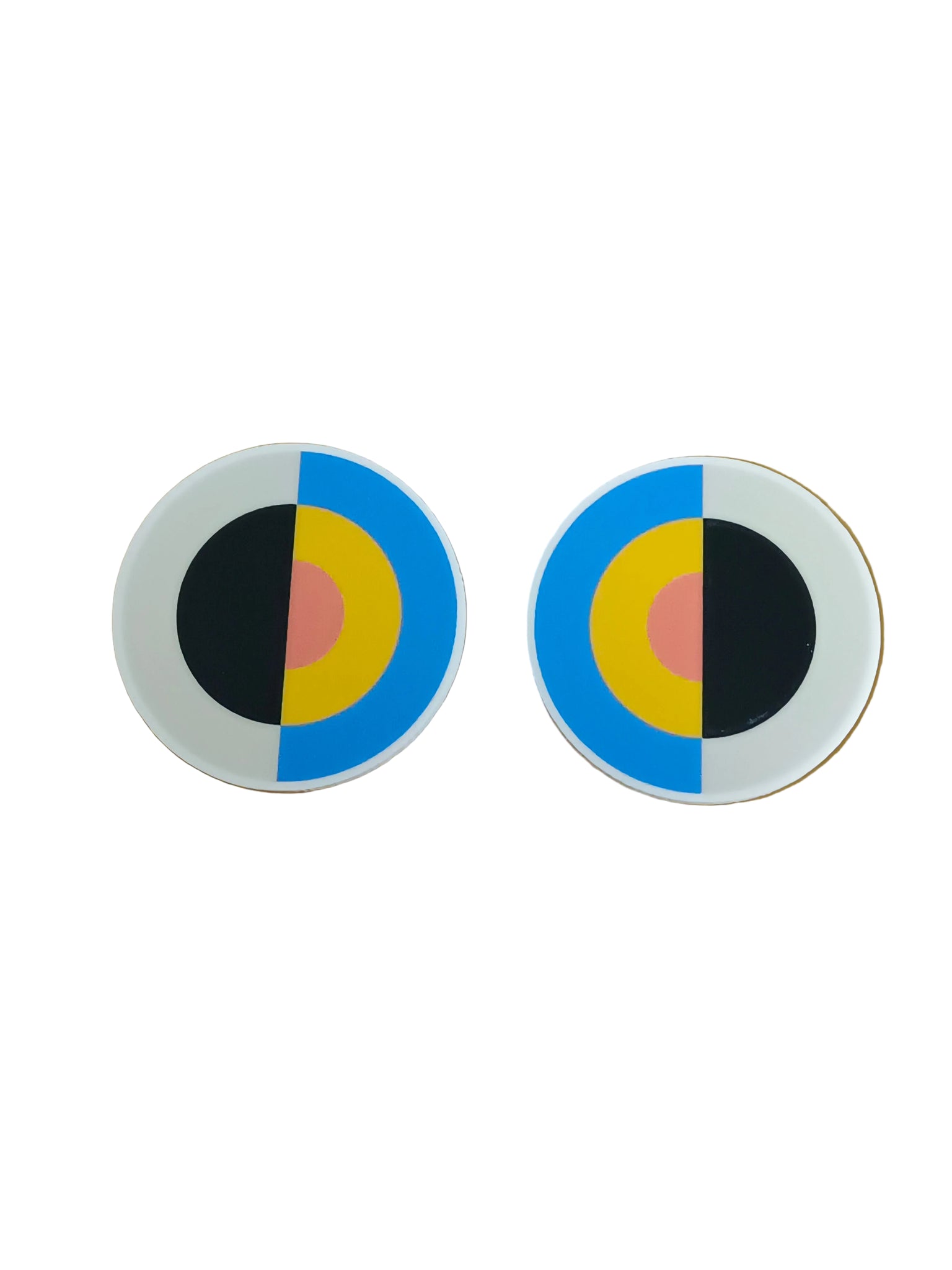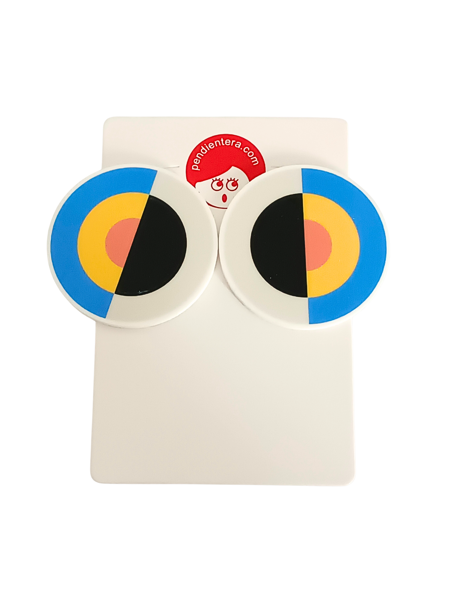 • Pendientes de metal y acrílico con ilustración Pendientera por una cara y blancos por detrás.