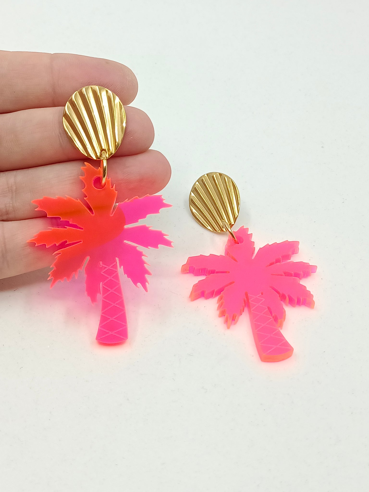 Luce original con estos pendientes en forma de palmeras acrílicas cortadas con láser.